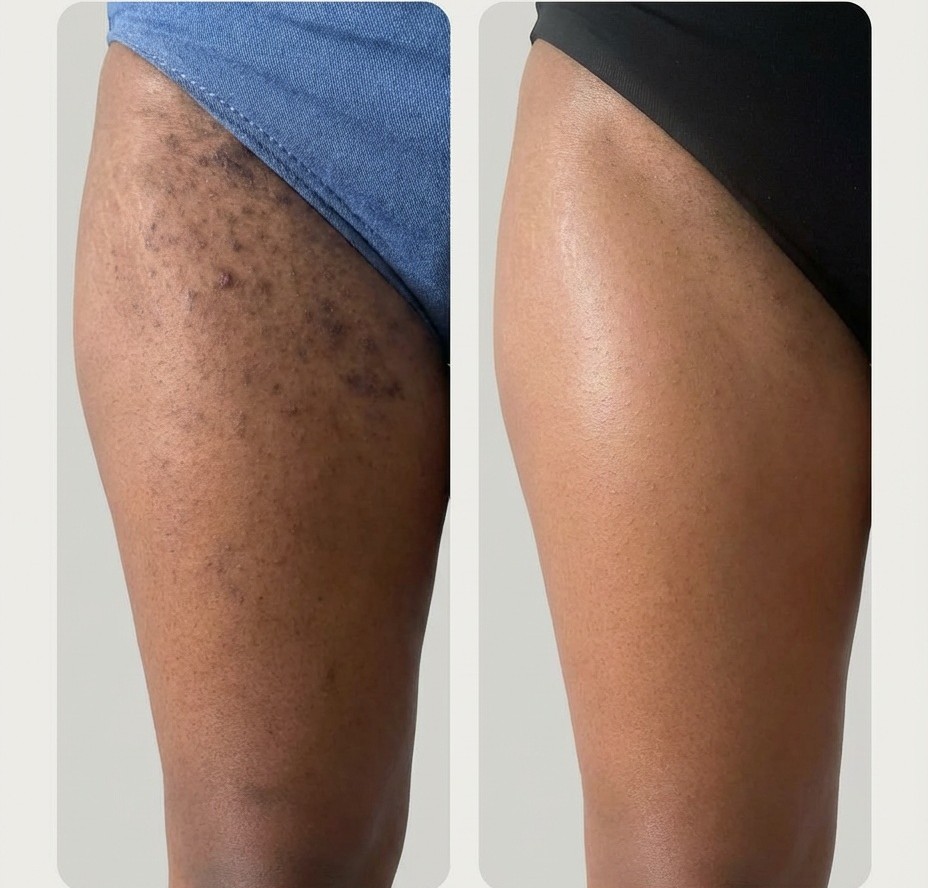 Three weeks later my thighs are actually smooth. The darkness faded.